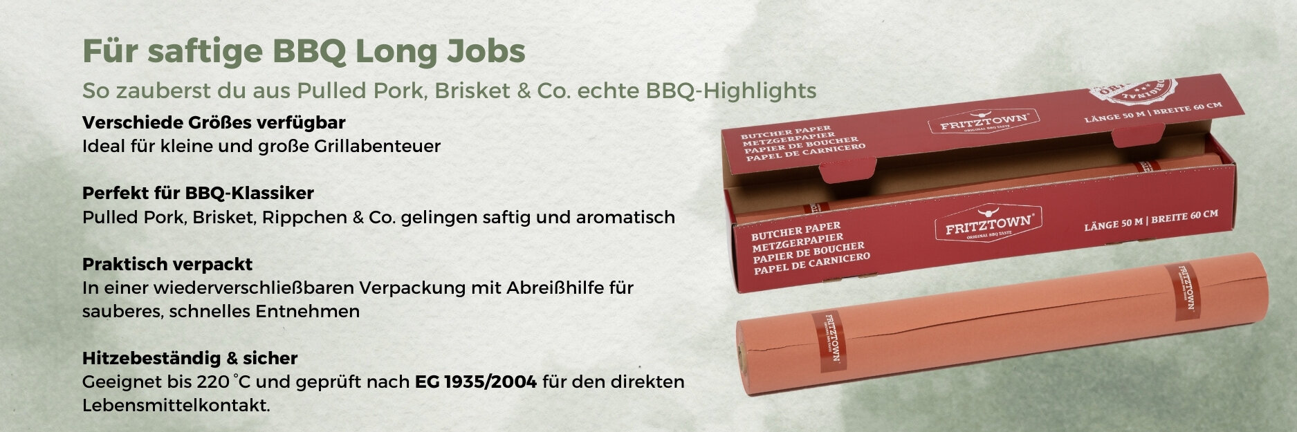 Besonders stark sind wir bei Papierwaren, die wirklich funktionieren: Deli Paper als Trayliner, Burgerpapier für Smash & Classic, Butcher Paper fürs BBQ und fettdichte Einschlagpapiere für Wraps, Döner, Streetfood und To-go. Viele Artikel gibt’s in gängigen Gastroformaten – auf Wunsch auch als neutral oder mit Branding/Logo-Druck.