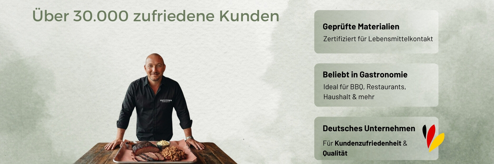 Zufriedenheit entsteht nicht durch Versprechen, sondern durch zuverlässige Qualität im täglichen Einsatz. Unsere Produkte überzeugen dort, wo es zählt – im Betrieb, in der Küche und am Grill.